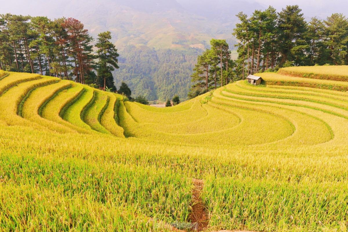 Đồi võng lúa, móng ngựa, xã Mồ Dề thuộc danh thắng ruộng bậc thang Mù Căng Chải, là điểm đến hấp dẫn của khách của du lịch trong mùa lúa chín vào tháng 9 và tháng 10.